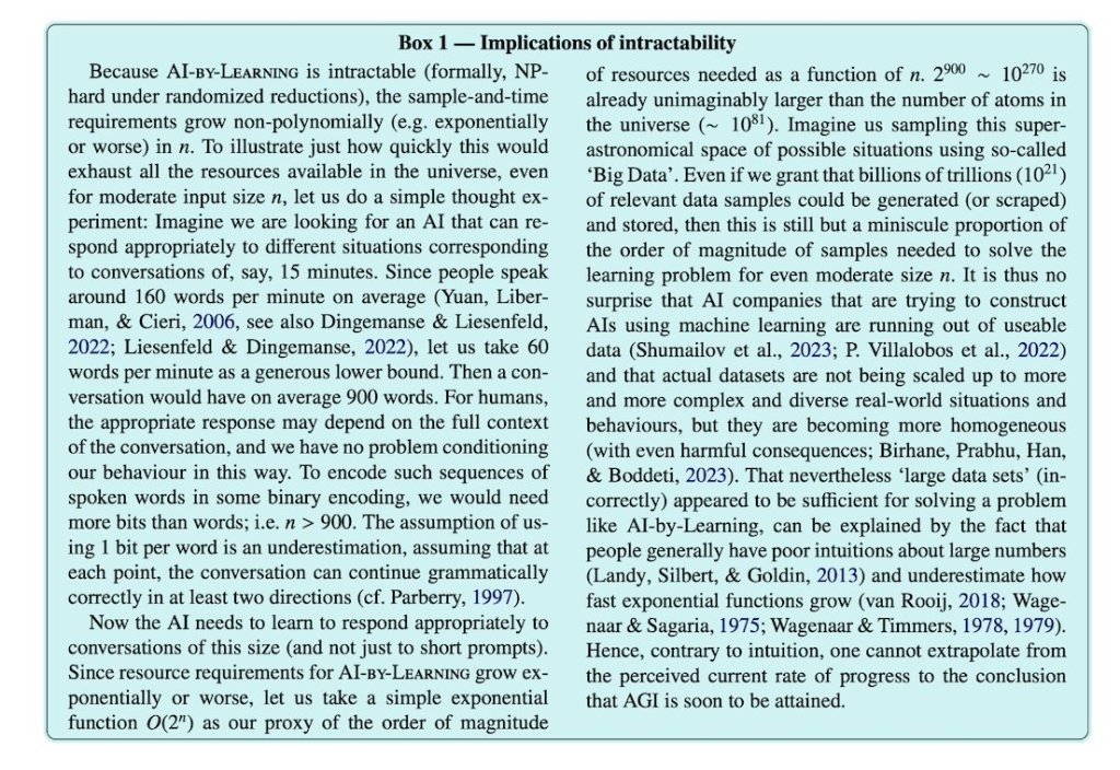 (…) we reveal why claims of the inevitability of AGI walk on the quicksand of computational intractability.